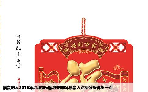 鼠生肖在羊年怎么样 以下是鼠生肖在羊年的具体情况:事业运势:属鼠人在羊年的事业运势可能会面临一些挑战。由于羊年对于鼠生肖来说是害太岁的年份,这意味。属鼠人还需要注意身体健康,避免因小病小痛影响工作状态。财运分析:在财运方面,属鼠人在羊年的表现相对平稳。尽管受到害太岁的影响,属。2015年属鼠人的财...