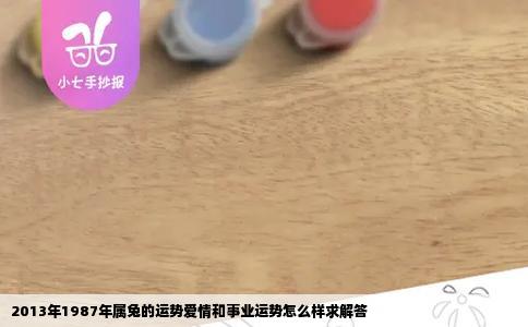 属兔1987年6月初5生一生运势 使之运势昌顺、生活富足。在方位五行中西北方也为1987年属兔人的发财方向,所以87属兔人来到此方位发展也是非常适宜的。不仅会使其事业和健康运势同步增长,而且还会其遇到属于自己的正缘,并且与之步入婚礼的殿堂,从而使庭生活幸福、恩爱非常,可谓是爱情事业双丰收、事事顺。...